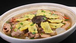 殷实人家招待贵宾、操办红白喜事,宴席上才有这道菜。至亲厚友外出日久,归来接风,或出远门壮行,也做这道菜。蒸盆子体现了主人的一片盛意和厚道,盆大、鸡全、猪蹄厚重、蛋饺香、蔬菜多、汤汁鲜美、醇厚。一只铜锅中鸡肉之鲜,猪蹄之嫩滑,还有红白萝卜的香脆之甜,在可爱的蛋饺点缀之中散发出的是特有的陕南经典味道,万种滋味汇于一盆。