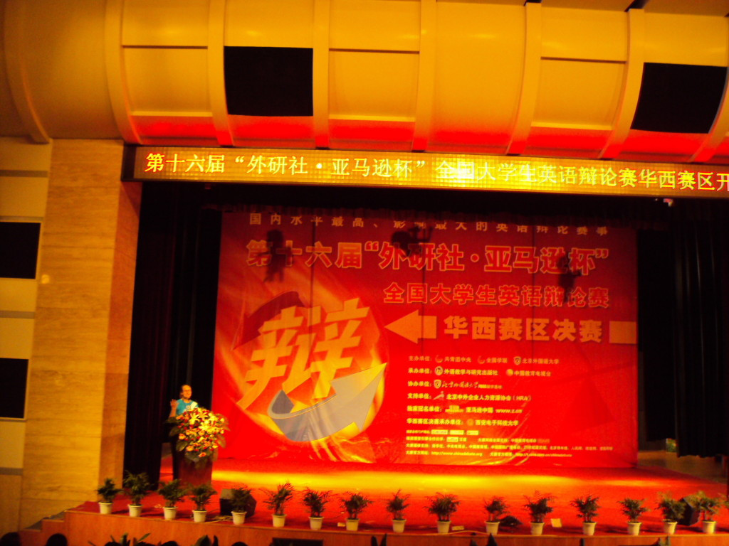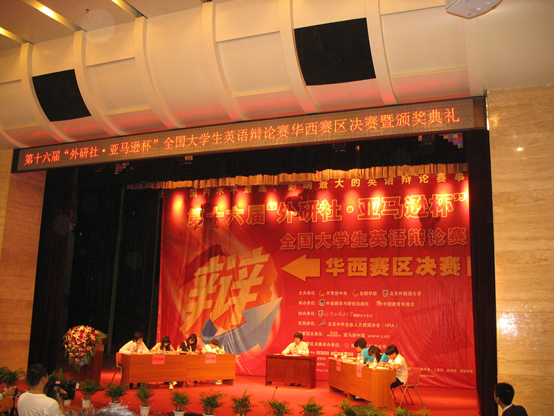 据悉,在这次英语辩论赛中,共有来自四川、重庆、陕西、云南、甘肃等8省的近70所高校代表队,其中,有包括四川大学、西安交通大学、重庆大学、四川外国语学院、西安外国语大学等近30所211高校及英语专业院校,辩论场上可谓人才济济,强手如云。