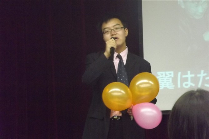 10月17日晚,外语系日语教研室在学校图书馆六楼报告厅成功举办了“日语专业迎新晚会暨卡拉OK大赛”。外语系哈红光主任,党总支李延福书记,张哲华副主任老师,大英部李继平主任,12级日语专业辅导员杨厚东老师以及日语专业全体学生参加了本次活动。日语专业教师陈玉平,张琴芳,肖雯,刘婷,梁维,以及外教赤松秀夫和海道千春担任大赛评委。