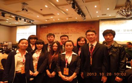 通过本次在韩参加文化会议,以及与韩国当地大学生的实际交流,同学们更加全面地了解到了韩国人民的文化和信仰。文化交流的理想目标是“和而不同”。 中韩两国都有悠久的历史、灿烂的文化,都曾受到儒家文化的极大影响,两国的文化既有共同之处,也有不同之处。我们应相互尊重对方国家的独特性,扩大两国的共同性。遵循这个原则,我们就一定会开创中韩文化交流的新局面。只要中韩双方共同培养和呵护正在开放的中韩文化交流之花, 就能丰富和充实“韩流”和“汉风”的内容,使“韩流”和“汉风”从自发走向自觉,就能不断地扩大成果,“共 创和平与共同繁荣的未来”。