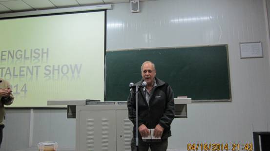 4月16日晚7点,一年一度的“安康学院大学生英语才艺大赛”总决赛在1018教室隆重举行,我校新西兰籍教师Raymond John Dennison,以及刘燕、杜恒、周玫、袁国、任森龙等老师担当评委,我校大学英语教学部主任李继平老师到会颁奖并讲话。