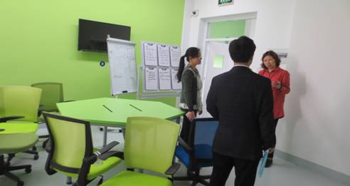 在简单说明访问目的后,大红鹰学院人文学院外语系主任王琦带领来访人员参观了该校人文学院“语言文化体验中心”和“翻转课堂教学中心”。在参观中,王主任详细介绍了两个中心的建设与使用情况。在随后的交流中,双方就各自的专业建设、人才培养、实践教学等进行了深入探讨。双方也就今后合作交流达成了共识。