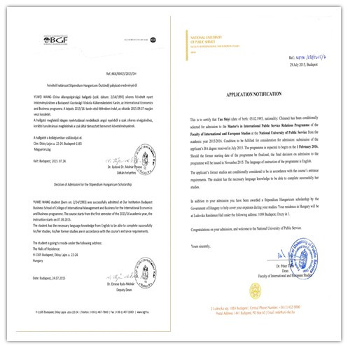 日前,国家留学基金管理委员会《2015-2016年度与匈牙利政府互换奖学金项目录取人员名单》公布,我校推选的2011级英语专业学生陶适意、王雨薇通过国家留学基金委员会和匈牙利政府及相关高校的严格评审,分别被匈牙利国立公共服务大学、布达佩斯商学院录取,即将赴匈攻读硕士研究生学位。此次是我系学生第一次获得国家公派出国留学资格,展现了我系学子良好的专业水平和积极进取的精神风貌。