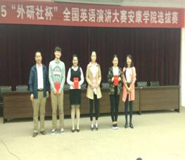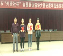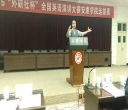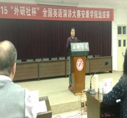 10月14日晚,2015“外研社杯”全国英语演讲大赛安康学院选拔赛在我校图书馆六楼报告厅隆重举行。大赛评委由外语系Frank Paul Roppo、孙卫斌、姜国波、陈蕾、梁艺凡等五位教师组成。学校教务处副处长常权记、外语系主任哈红光、大学英语教学部主任李继平、外语系副主任张哲华,以及部分教师参加此次大赛。本次比赛由教务处和外语系承办,自5月启动以来,经过前期两轮专业组初赛和非专业组初赛遴选,共有7个院系19名选手成功晋级此次选拔赛决赛。