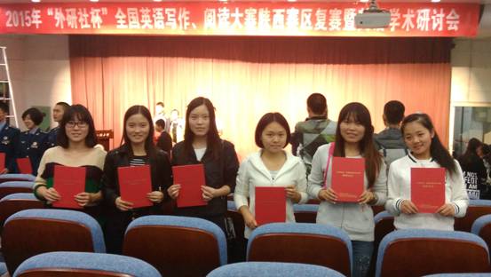 2015年10月23至24日,由外语教学与研究出版社主办,陕西高等学校大学外语教学研究会和西安工程大学承办的2015“外研社杯”全国英语写作大赛暨阅读大赛陕西赛区复赛在西安工程大学临潼校区举行。我校外语系彭香、赵银红荣获写作大赛二等奖,教科系腾博获得写作大赛三等奖。外语系肖卿、肖丽,教科系陈翠翠等三人获得阅读大赛三等奖。