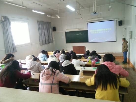 为了锻炼和提高日语专业学生语言组织与书面表达能力,加强实践性教学环节,12月14日,我系日语专业在6405举行了安康学院外语系第三届日语写作比赛。参赛选手为日语专业三年级的学生,日语专业教师张琴芳、陈玉平、王庚、梁维作为评委出席了本次比赛。