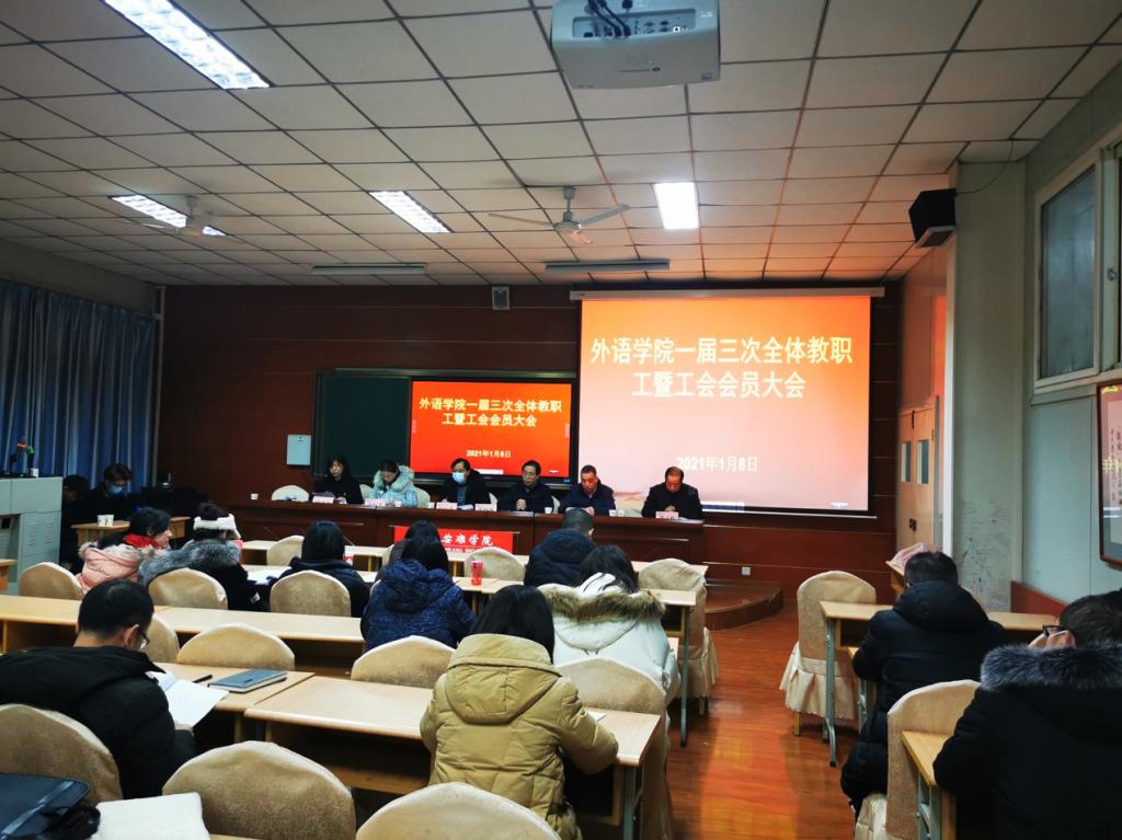 2021年1月8日下午19:00,437bwin必赢国际官网一届三次全体教职工暨工会会员大会在1018会议室隆重召开,学院领导班子、全院教职工参加了会议。校党委副书记胡波,原437bwin必赢国际官网党总支书记郭家平应邀参加了会议。大会由437bwin必赢国际官网党总支副书记胡卫卫主持。
