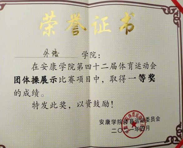 4月20日-22日,安康学院第四十二届运动会在江南校区运动场隆重举行。我院师生在赛场上团结协作,奋勇争先,充分发扬“更高、更快、更强”的奥林匹克竞赛精神,荣获体育道德风尚奖和团体操一等奖的好成绩,同时,在普通男子100米、普通男子400米、普通男子800米、普通男子3000米、普通女子400m、乒乓球正手攻球等个人项目中,共计1人次荣获第一、6人次荣获第三;在同心鼓、能量传递、女子4×400米接力等集体项目中,均荣获第三名。