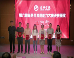 为深入学习贯彻习近平新时代中国特色社会主义思想,全面贯彻落实全国教育大会、全国高校思想政治工作会和学校思想政治理论课教师座谈会精神,落实《普通高等学校辅导员队伍建设规定》要求,7月10日上午,安康学院第六届辅导员素质能力大赛决赛在江北校区图书馆报告厅举行,我院辅导员认真准备,积极参赛,经过初赛,复赛,决赛等环节,最终我院辅导员梁博文获得二等奖,李梦获得三等奖。