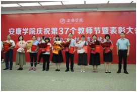 9月10日下午,安康学院庆祝第37个教师节暨表彰大会在江南校区图书馆六楼报告厅举行。我院张哲华、胡卫卫、陈玉平、王欢四名教师分别受到学校表彰。