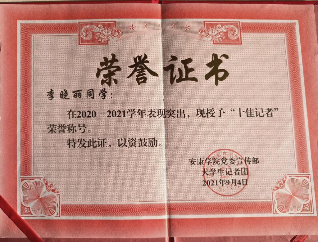 少年易老学难成,一寸光阴不可轻。在学习之余,她还积极参加校内校外组织的各项活动。在学校里,她曾任大学生记者团总务部的部长,在面对诸多复杂繁琐的事物时,她学会了如何协调多项工作任务,这都是课堂之外带给她的收获。除此之外,她还曾在校外从事兼职,这使她能够尽早参与社会、了解社会、适应社会。