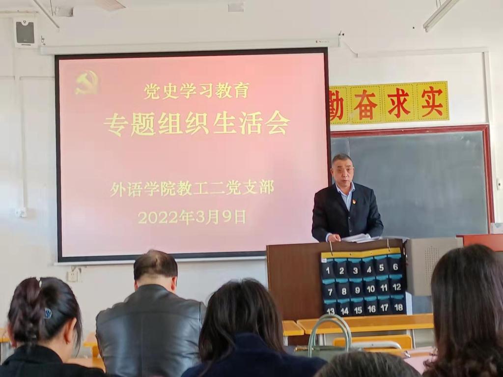 党支部书记刘子富代表支部委员在大会上作了述职报告,总结了一年来该支部在党史学习教育、基层党建、“党建+学生培养”等系列活动中所取得的成绩,也报告了支部党员在教学、科研、社会服务等方面对437bwin必赢国际官网发展方面的贡献。