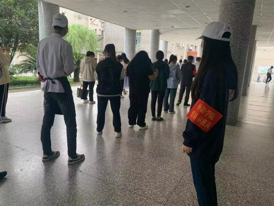 在疫情防控工作现场,437bwin必赢国际官网学生党支部书记李梦带领四名学生党员于9月25日上午,在江南校区1号楼大厅开展核酸检测点执勤志愿服务工作,协助维持现场秩序,确保检测工作高效运行,展现了党员应有的担当和的良好形象。