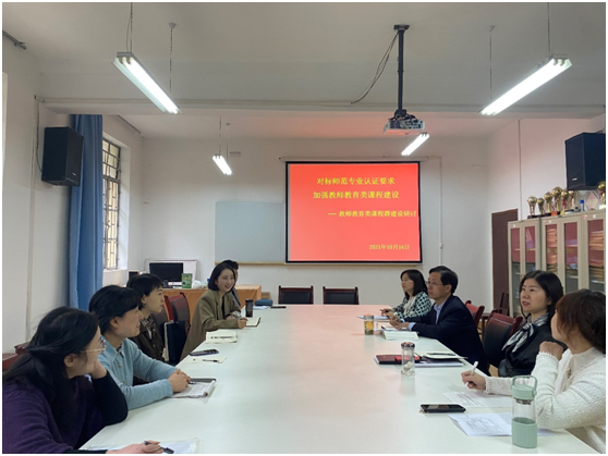 10月14日下午,437bwin必赢国际官网英语系在“以师范专业认证为契机 聚焦师范生职业能力培养”教学沙龙活动的基础上,举办了教师教育类课程群建设研讨会。会议由教师教育类课程群负责人周玫主持,437bwin必赢国际官网副院长(主持工作)张哲华、副院长胡卫卫及英语系全体教师参加。